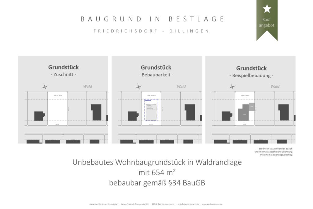 In einer der schönsten Straßenzüge Friedrichsdorfs, in Dillingen, finden Sie dieses traumhafte Baugrundstück in ruhiger und exklusiver Lage, direkt am Waldrand.