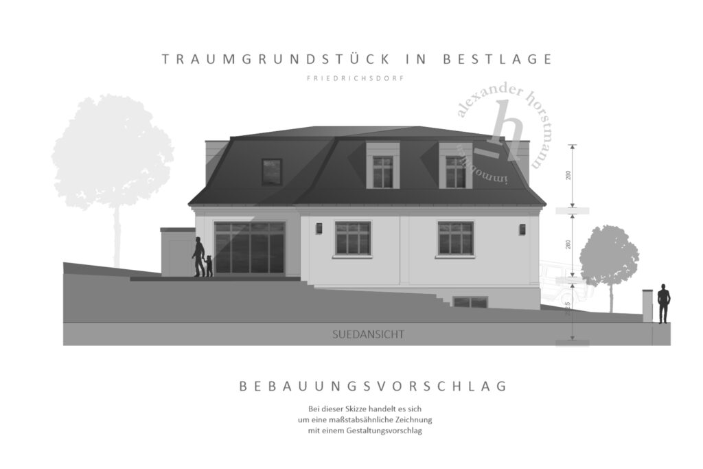 Bebaubar nach § 34 BauGB, umgangsprachlich gemäß Nachbarbebauung, bietet es von daher vielfältige Möglichkeiten der Bebauung: Ob klassisch als Walmdachvilla ausgeführt oder eher modern im Bauhaus-Stil, ganz nach Ihrem Geschmack. Auch wäre ein Zweifamilienhaus vorstellbar, wie auch alternativ eine Doppelhausbebauung.